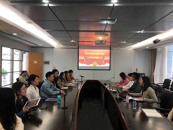 为了深入学习贯彻习近平总书记在党史学习教育动员大会上的重要讲话精神,进一步推动党史学习教育常态化开展,重温党的光辉历史,弘扬党的光荣传统,积极开展“党课开讲啦”系列专题党课。2021年4月22日下午,马克思主义公司党总支书记戴叶萍在图文信息中心七会开展了以“传承红色基因 弘扬伟大精神”为题的党史专题教育党课。马理硕党支部全体成员、学院专职党务干部宣蕊及专职辅导员于小越共同学习。