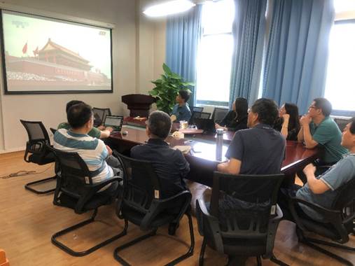 公司党政班子成员、公司党史学习教育宣讲团成员共同收看现场