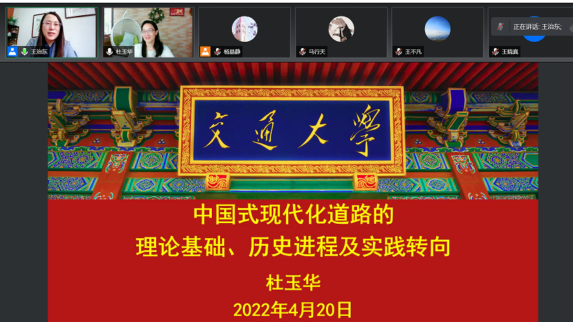中国式现代化道路的理论基础、历史进程及实践转向——上海交通大学杜玉华教授受邀讲学发布时间:2022-04-29