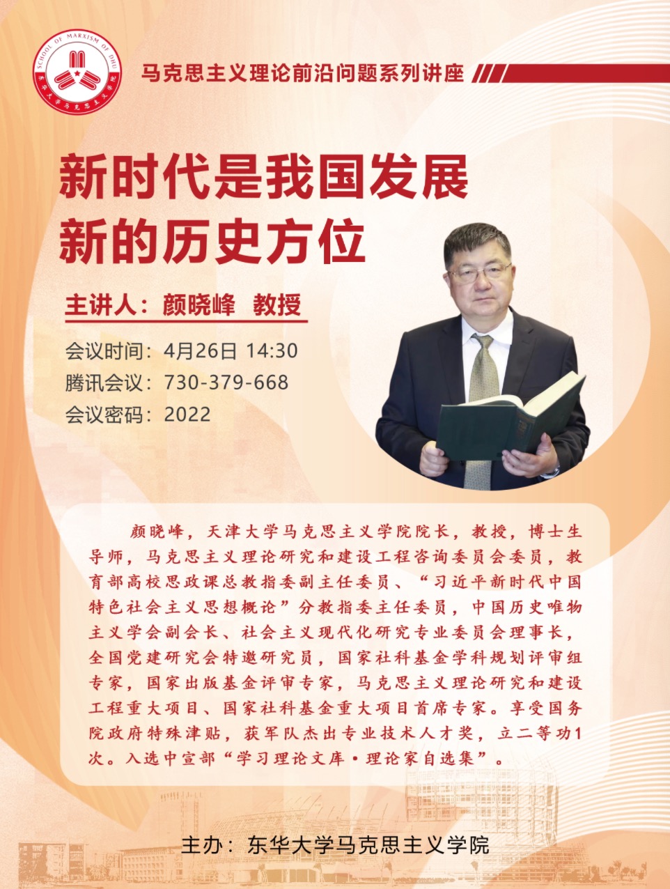 天津大学颜晓峰教授受邀主讲“新时代是我国发展新的历史方位”发布时间:2022-04-29