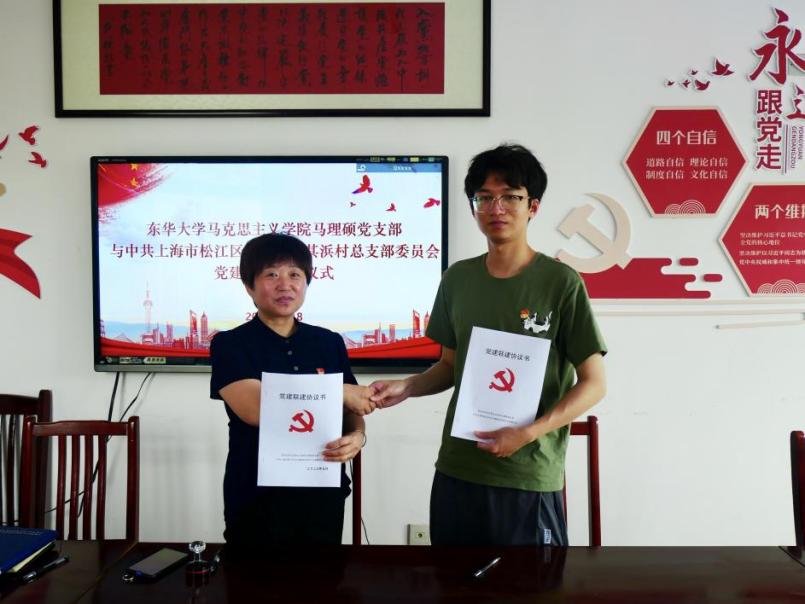 戴叶萍在仪式上致辞指出,公司党委始终坚持以习近平新时代中国特色社会主义思想为指导,积极发挥学科优势特色,不断拓展党建工作溢出效应,将党建工作与区域发展深度融合。多年来,学院与松江广富林街道和长宁区有着很好的党建联建基础,尤其在理论宣讲、党员公益服务等方面开展了系列工作,也取得了显著成效。此次马理硕党支部与陆其浜村党总支签约共建,是我们党建联建育人平台的进一步深化拓展。后续学院将继续发挥好传统和优势,不断深化互联互动、共建共享,积极服务地区发展和乡村振兴,以高质量党建拓宽育人新格局。