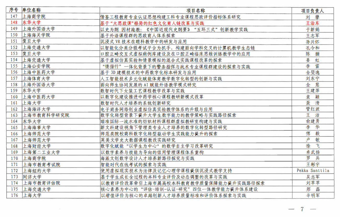 近日,上海市教委公布了“2023年上海高校本科重点教改项目立项名单”,公司王治东老师领衔申报的“基于‘大思政课’格局的红色文化育人链改革与实践”获得立项,这是学院推进“大思政课”建设成果的重要体现。