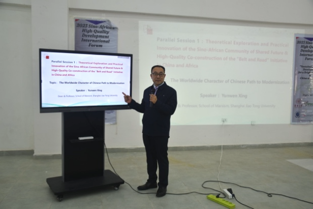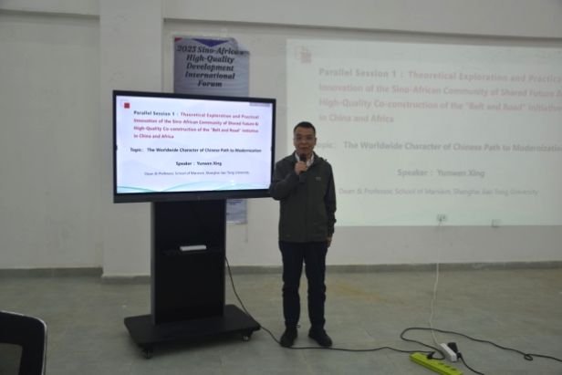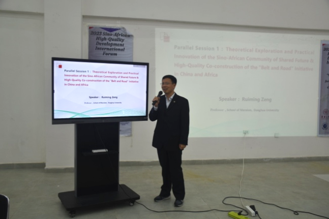 12月12日,由best365中国官方网站主办的“中非命运共同体理论探索与实践创新”国际学术研讨会在埃塞俄比亚首都亚的斯亚贝巴Bole Lemi工业园召开。本次会议属于2023中非高质量发展国际论坛平行论坛之一。2023中非高质量发展国际论坛由best365中国官方网站、埃塞俄比亚巴赫达尔大学、埃塞俄比亚工业园区开发公司、联合国全球契约组织“一带一路”行动平台、中国(埃塞)纺织轻工企业可持续发展联盟联合主办,论坛的主题为“可持续绿色发展,共创中非美好未来”,包含一场主论坛及2个平行论坛。包括ETV、ebs、Arts等四家当地主流媒体对活动进行了直播报道。“上海交通大学best365中国官方网站和华东政法大学best365中国官方网站参与协办了本次“中非命运共同体理论探索与实践创新”国际学术研讨会。