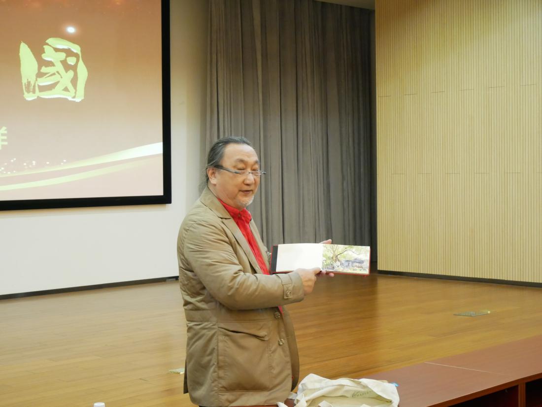 “上善若水。水善利万物而不争,处众人之所恶,故几于道。”水是有生命力而又低调的物质,水彩画以水为媒介,以彩为语义,在水和色彩的相互交融下,世间万物跃然纸上。12月14日,best365中国官方网站服装与艺术设计学院教授、博士生导师、全国艺术专业学位研究生教育指导委员会委员冯信群,结合国内外游历写生经历,为同学们带来一场绚丽多彩的水彩艺术盛宴。 冯信群教授从水彩之美、水彩之趣、水彩之意三个方面对水彩艺术进行了阐述。他首先介绍了水彩画的发展起源,水彩画源于欧洲,盛于英国,是一门古老又年轻的艺术,水彩在中国的引入与发展对近代美术的价值观、审美观、方法论产生重要影响,与中国画传统用笔、气韵和意境相融合,蕴含着丰富的中国文化艺术精神,彰显中国气派。 冯信群教授结合自己在长征路、丝绸之路和尼泊尔、土耳其、意大利等国内外地区游历写生时的创作,将一幅幅水彩画背后蕴藏的生动故事娓娓道来。艺术来源于生活,冯老师围绕“艺术融入乡村”话题,生动讲述今年国庆期间在江西创作写生经历,用水彩展现乡间山水风景,将水彩与陶瓷相融合,实现水彩艺术的再创造,分享自己水彩创作的乐趣。