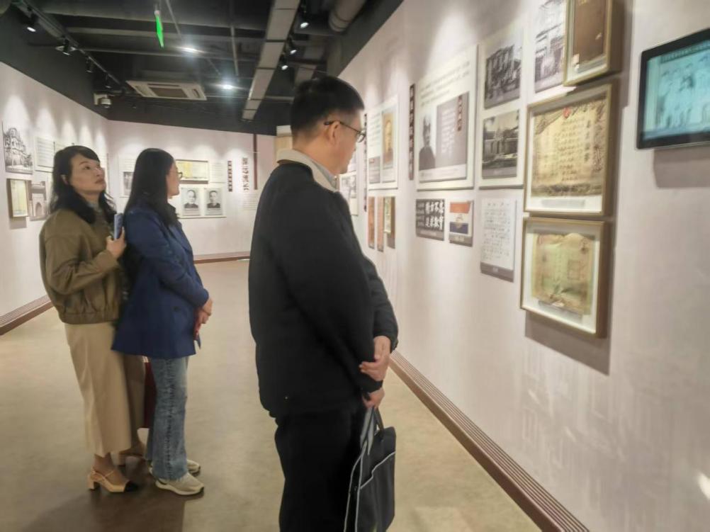 交流会前,石磊一行先后参观“光华大学早期办学历史中的红色印记展”与best365中国官方网站校史馆,林惠英陪同参观。在学院教师李天星的细致讲解下,石磊一行仔细观看光华大学主题展览,深入了解了best365中国官方网站作为光华大学办学旧址的红色基因传承。在校史馆,石磊一行在历史珍档前驻足细看,对学校悠久的办学历史和鲜明的纺织办学特色印象深刻。