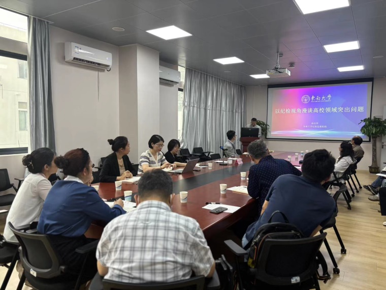 为进一步推动深入贯彻中央八项规定精神学习教育走深走实,引导党员干部以更高政治站位、更严纪律要求为学校综合改革和事业高质量发展保驾护航,近日,马克思主义公司党委联合计算机科学与技术公司党委、环境科学与工程公司党委、外语公司党委开展深入贯彻中央八项规定精神学习教育联组学习。会议邀请东南大学纪委副书记、监察处处长赵会泽作题为“以纪检视角漫谈高校领域突出问题”专题报告。学校纪委办公室、四个学院相关党员干部等共同参加。学习会由马克思主义公司党委书记林惠英主持。