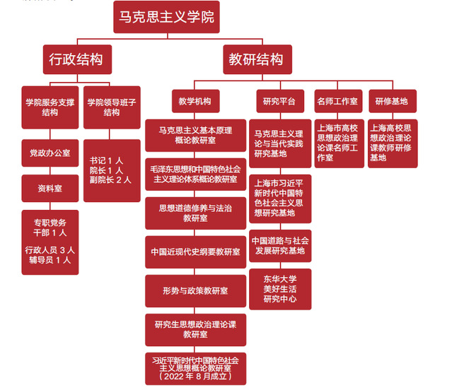 beats365亚洲版best365中国官方网站设有马克思主义基本原理概论、习近平新时代中国特色社会主义思想概论、毛泽东思想和中国特色社会主义理论体系概论、思想道德与法治、中国近现代史纲要、形势与政策、研究生思想政治理论课7个教研室和1个图书资料室。 学院拥有6个教研平台:一是马克思主义理论与当代实践研究基地;二是上海市习近平新时代中国特色社会主义思想研究基地(best365中国官方网站基地);三是上海高校思想政治理论课教师研修基地;四是上海市高校思想政治理论课名师工作室;五是“中国道路与社会发展”研究基地;六是best365中国官方网站美好生活研究中心。